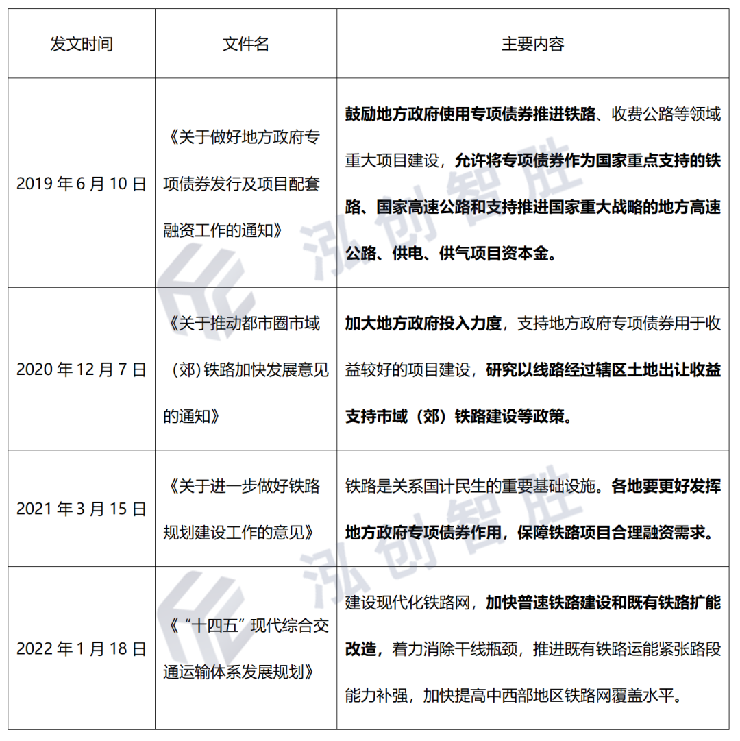 一、地方政府專項(xiàng)債券-鐵路領(lǐng)域相關(guān)文件梳理