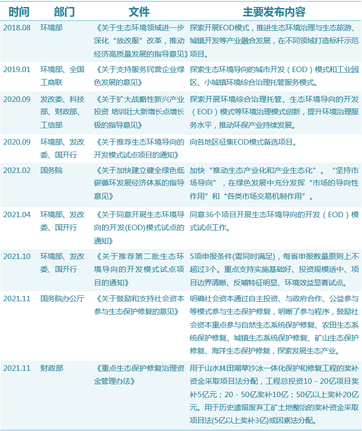 時(shí)至今年,多部委陸續(xù)出臺(tái)EOD相關(guān)政策,中央重視程度逐增。