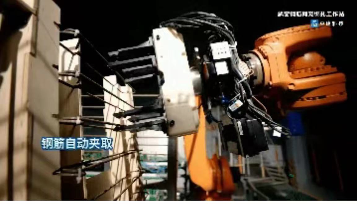 ▲中建科技智能鋼筋綁扎機器人