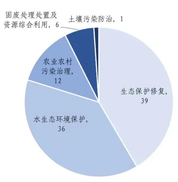 在以水生態(tài)環(huán)境保護為開發(fā)內容的項目中,多涉及長江中游水環(huán)境治理及生態(tài)修復、流域生態(tài)環(huán)境治理、河道綜合整治及兩岸配套提升、河湖清淤擴容、污水處理設施與配套管網(wǎng)建設改造等內容;以生態(tài)保護修復為開發(fā)內容的項目中,則主要會涉及到山水林田湖草沙冰一體化保護和修復、沙漠綜合治理、礦業(yè)資源綜合整治、礦山修復、區(qū)域生態(tài)污染防治等內容。除此之外,農(nóng)業(yè)農(nóng)村垃圾治理、農(nóng)業(yè)廢棄物綜合利用、農(nóng)村人居環(huán)境治理、鹽堿地改造、固體廢物防治等也是常見的開發(fā)內容。