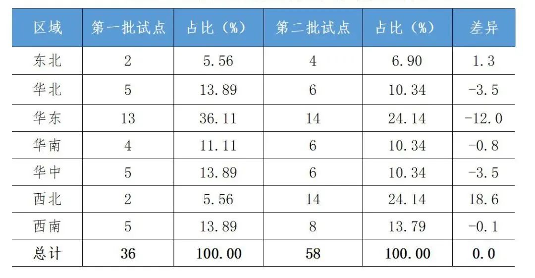 表1-1兩批EOD試點項目地區(qū)分布數(shù)量對比