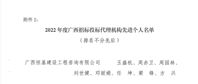 2022年度廣西招標(biāo)投標(biāo)代理機(jī)構(gòu)先進(jìn)個(gè)人名單