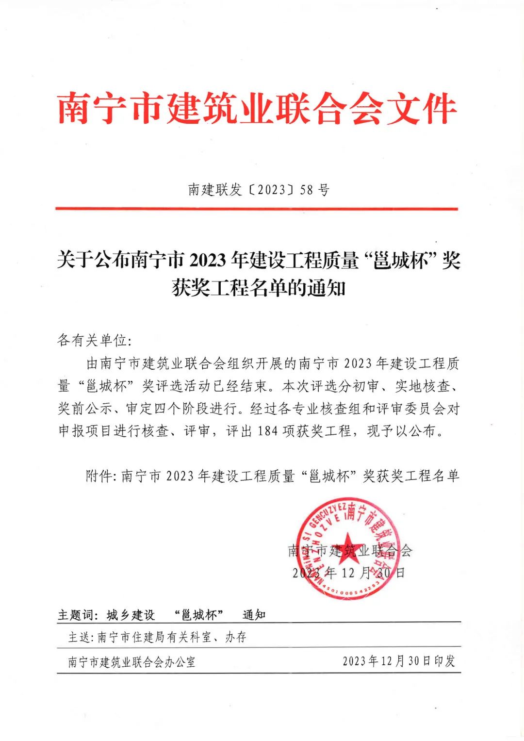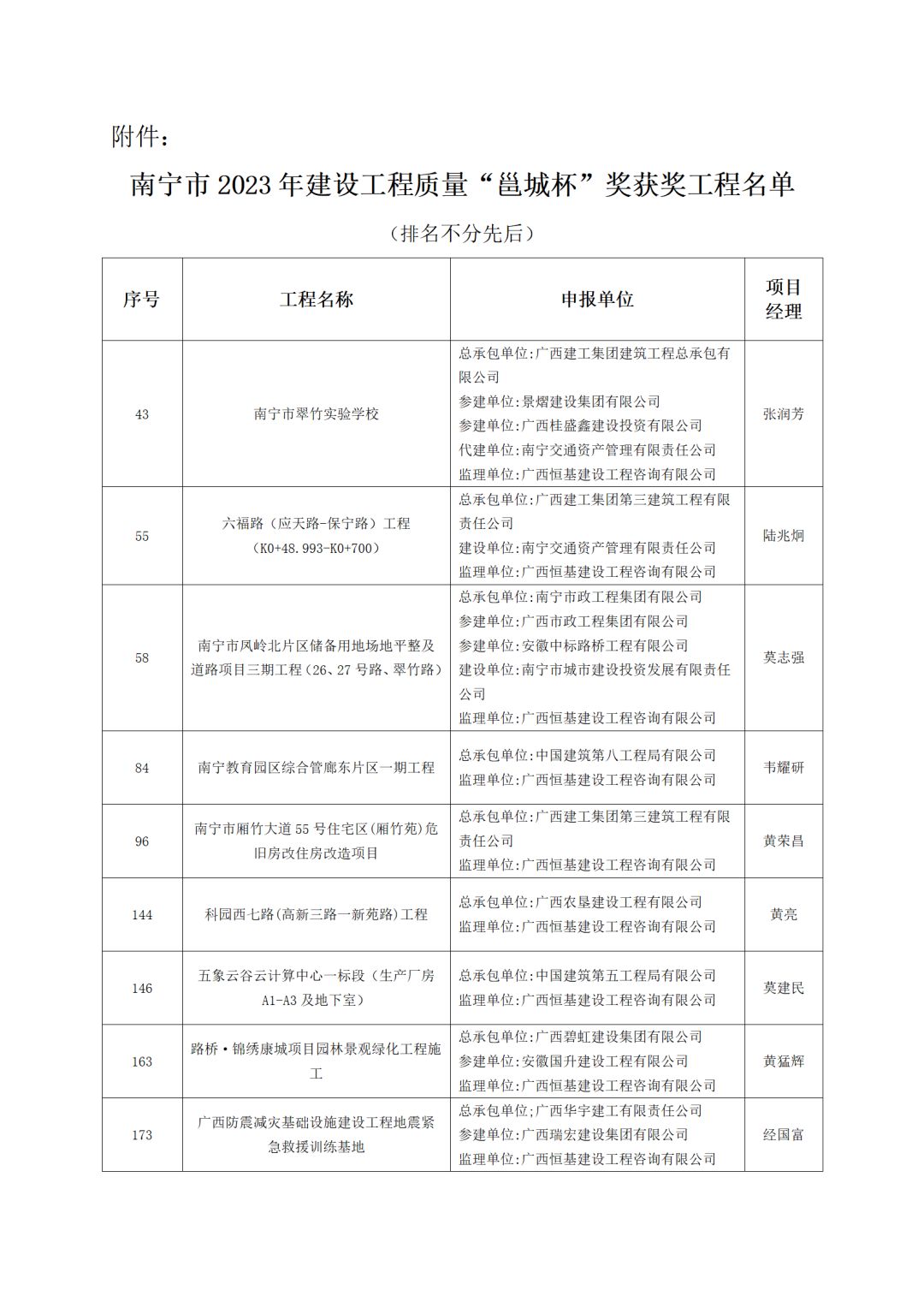 近日,南寧市建筑業(yè)聯(lián)合會(huì)公布了南寧市2023年建設(shè)工程質(zhì)量“邕城杯”獎(jiǎng)獲獎(jiǎng)工程名單。經(jīng)初審、實(shí)地核查、獎(jiǎng)前公示、審定等4個(gè)階段,恒基咨詢監(jiān)理的“南寧市翠竹實(shí)驗(yàn)學(xué)校”等9個(gè)項(xiàng)目,成功斬獲該獎(jiǎng)項(xiàng),充分展現(xiàn)了公司的服務(wù)質(zhì)量和綜合實(shí)力。