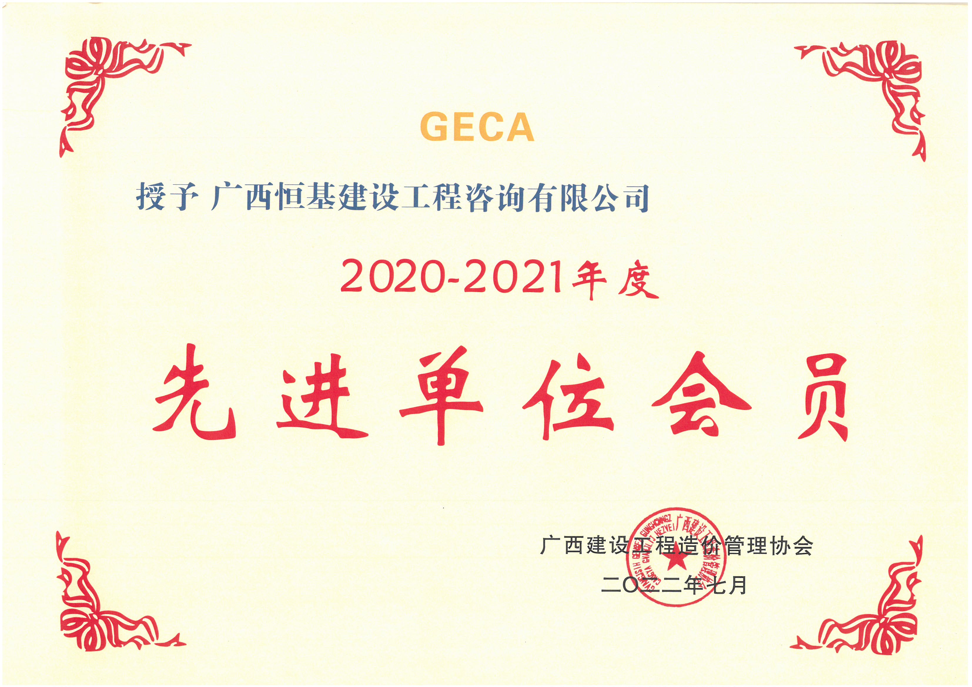 廣西建設工程造價管理協(xié)會2020-2021年度先進單位會員