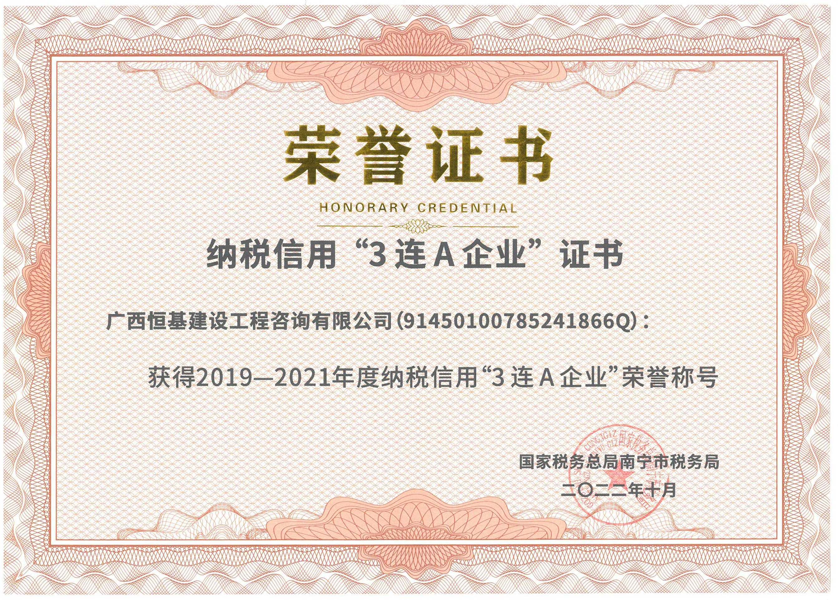 2019-2021年度納稅信用“3連A”企業(yè)證書(shū)