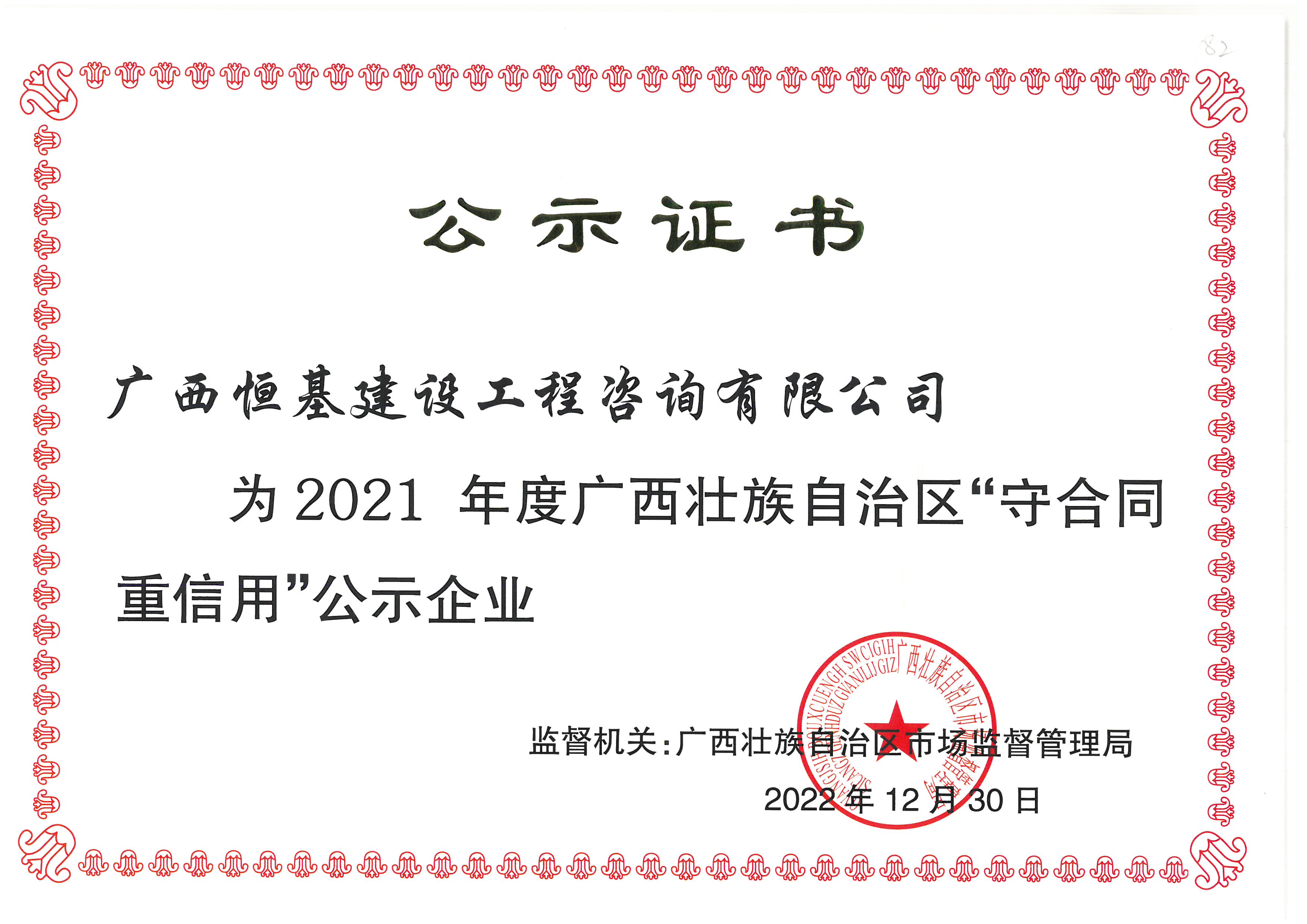 2021年度廣西壯族自治區(qū)“守合同重信用”公示企業(yè)