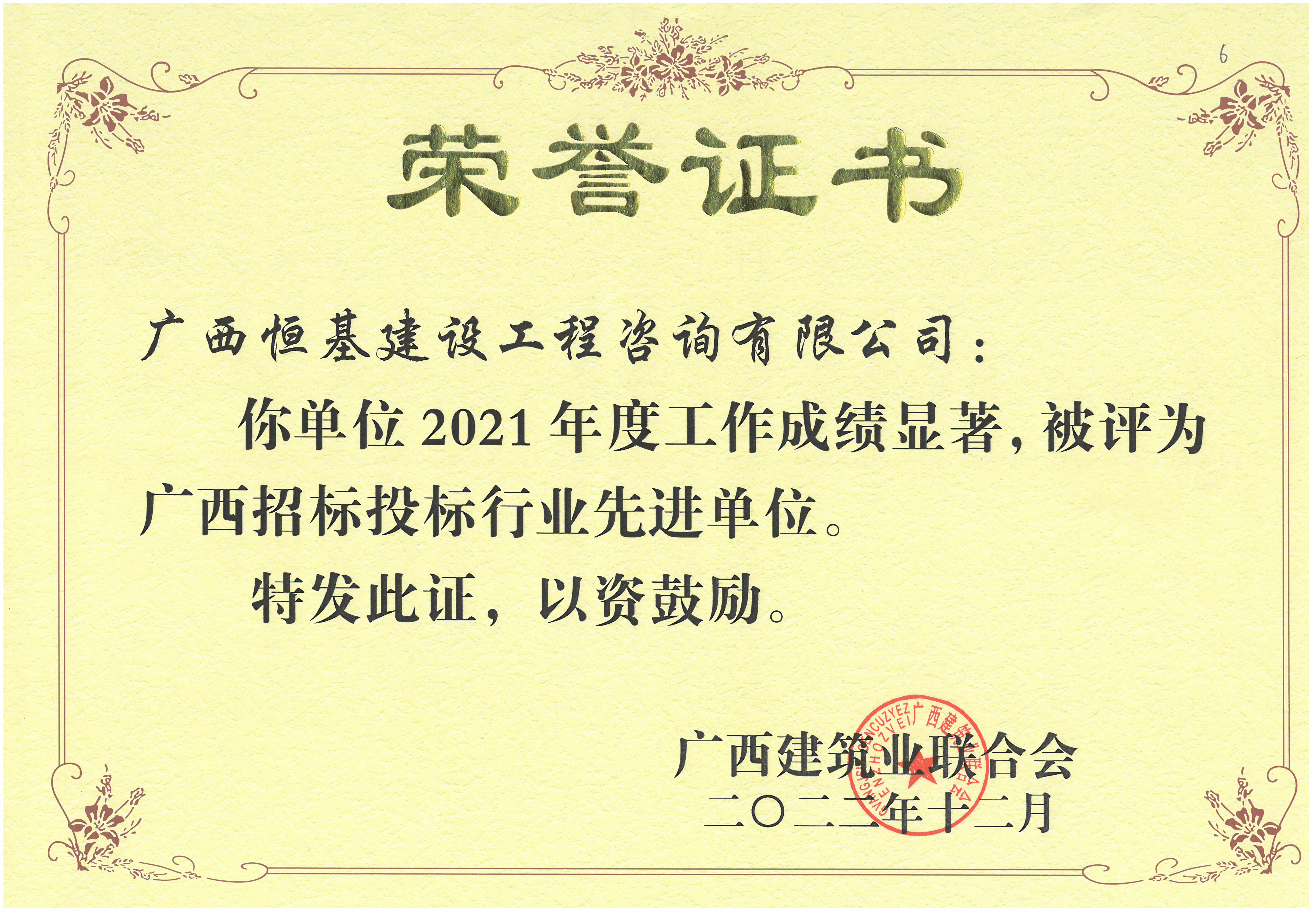 2021年度廣西招標(biāo)投標(biāo)行業(yè)先進(jìn)單位