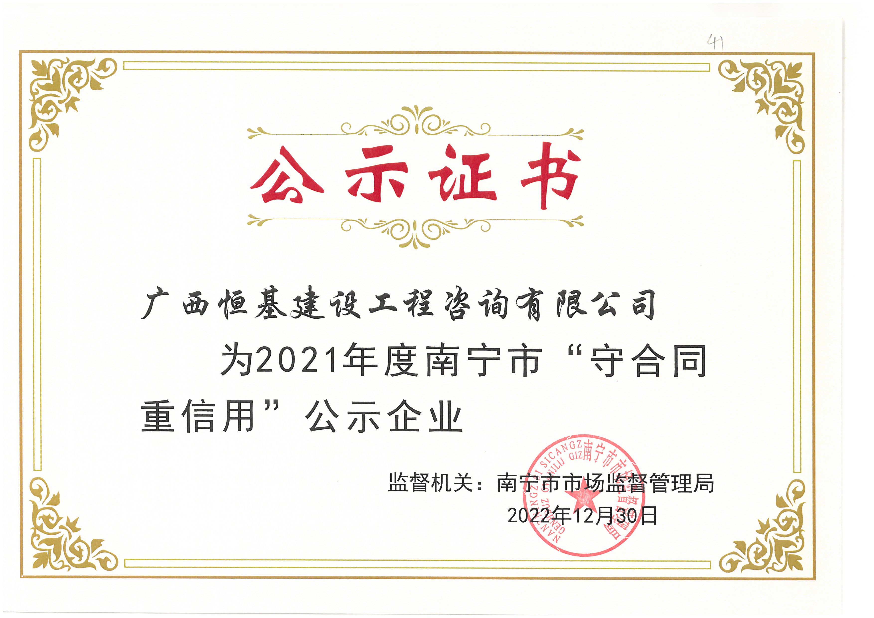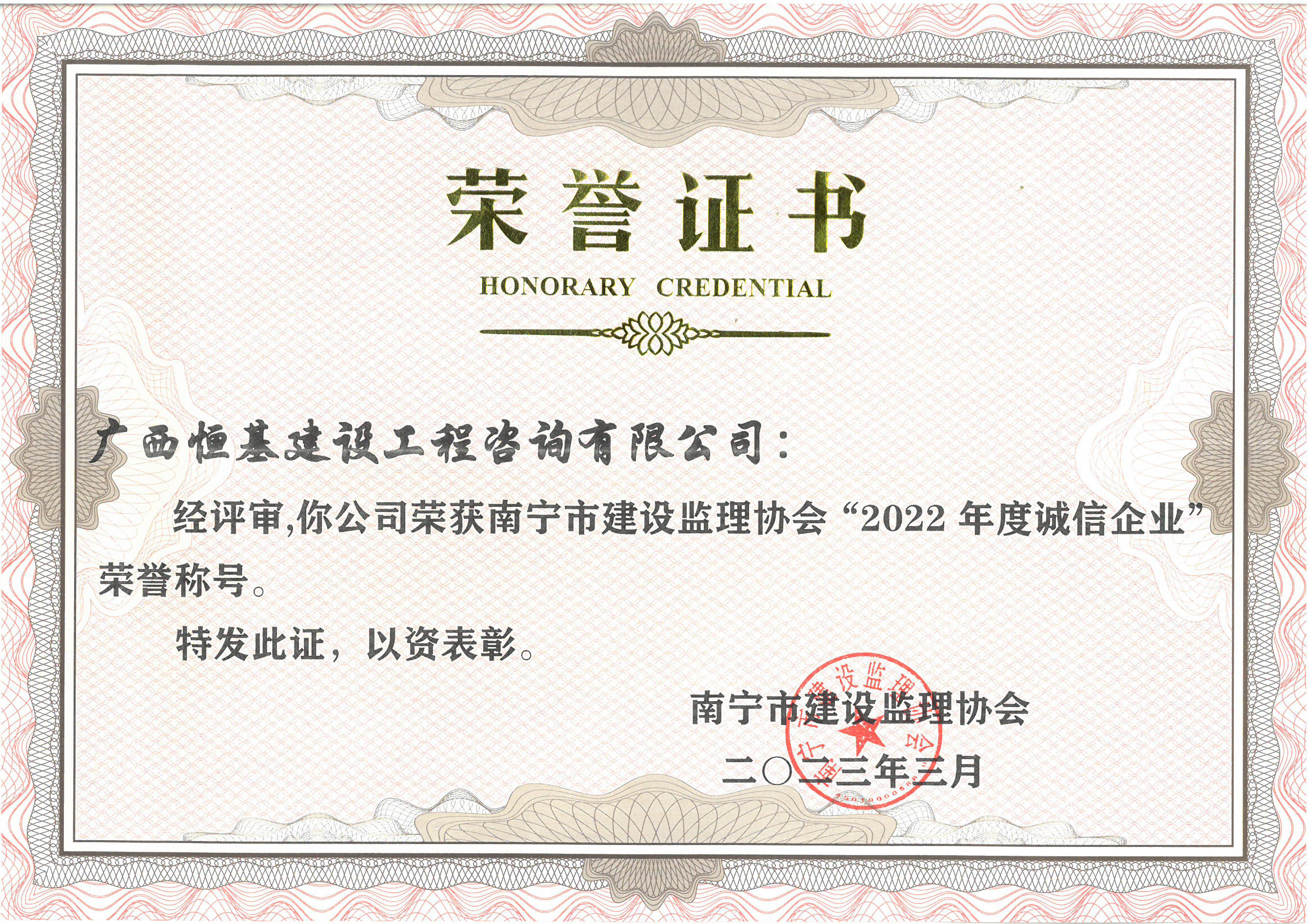 南寧市建設(shè)監(jiān)理協(xié)會(huì)2022年度誠(chéng)信企業(yè)