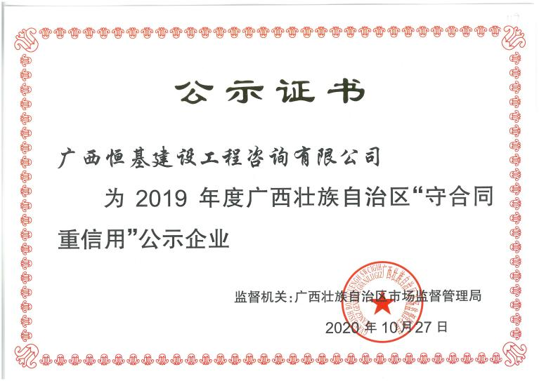 2019年度廣西“守合同重信用”公示企業(yè)