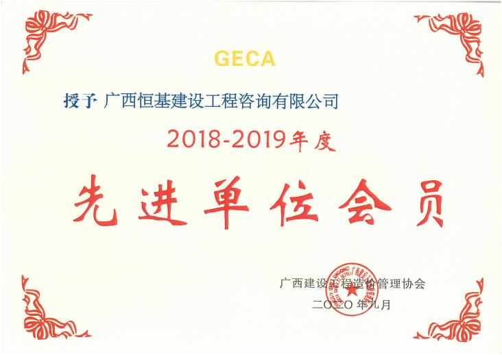 廣西建設工程造價管理協(xié)會2018-2019年度先進單位會員