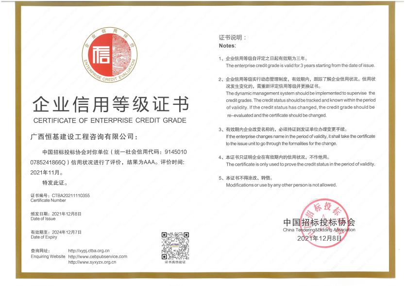 企業(yè)信用等級AAA